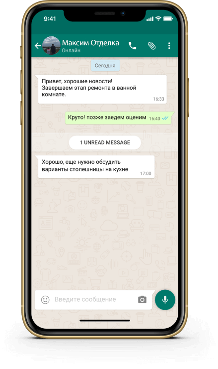 В чат мы отправляем вам фотоотчеты, акты, планы, чтобы все было в одном месте!